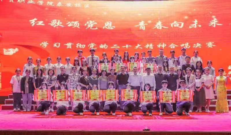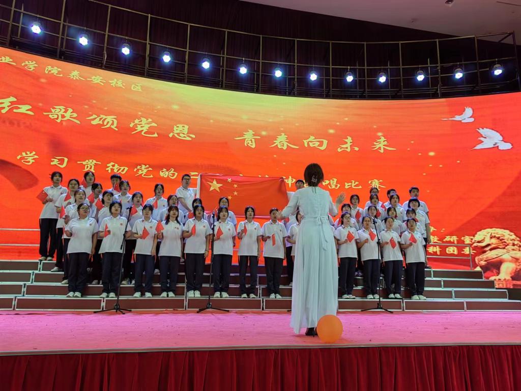 在学院深入开展学习贯彻习近平新时代中国特色社会主义思想主题教育之际,为深入学习贯彻党的二十大精神,用嘹亮的歌声讴歌伟大的党、伟大的祖国和人民,引导学生厚植爱国之情、砥砺强国之志、实践报国之行,争做新时代有为青年。5月31日晚,泰安教学部在泰山会堂成功举办以“红歌颂党恩 青春向未来”为主题的合唱比赛决赛。学院马克思主义学院院长季洪辉、泰安教学部党委书记白珣,副主任王岩、杜红欣出席活动。思政教研室、团委负责人及部分思政课教师、辅导员担任比赛评委。