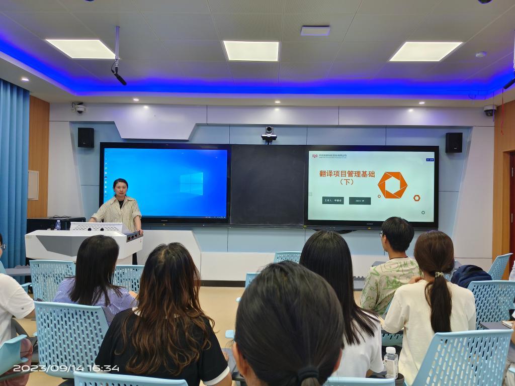 为拓展学生就业渠道,商务外语系联合中译语通科技(青岛)有限公司共同开办了“国际语言项目管理”订单班。9月14日下午,订单班第一课“翻译项目管理基础”在1号教学楼218教室开讲。主讲人由中译语通翻译部项目经理李慧姿担任,订单班指导老师陈春萌、张金柏,以及订单班30名学生参加了讲座。