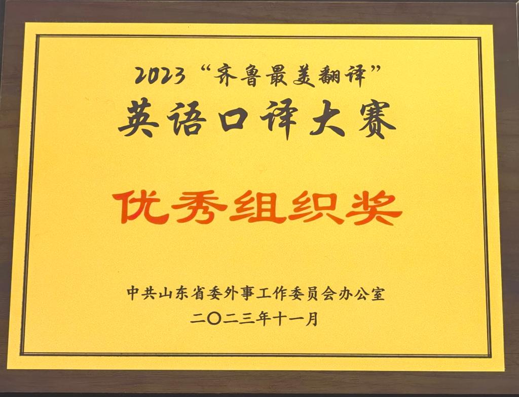 11月8日,2023“齐鲁最美翻译”英语口译大赛在济南落下帷幕。我院公共英语部青年教师万新霞荣获大赛三等奖,我院荣获优秀组织奖称号。