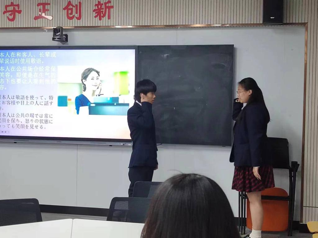 活动中,同学们以生动的演绎和精彩的讲解,从国家商务礼仪中的服饰礼仪、餐桌礼仪、会客礼仪等多个角度,展示了中国及世界各国的文明礼仪。通过互动形式,同学们分享了自己的文化视角,提高了同学们对于不同国家文化的交流与理解。
