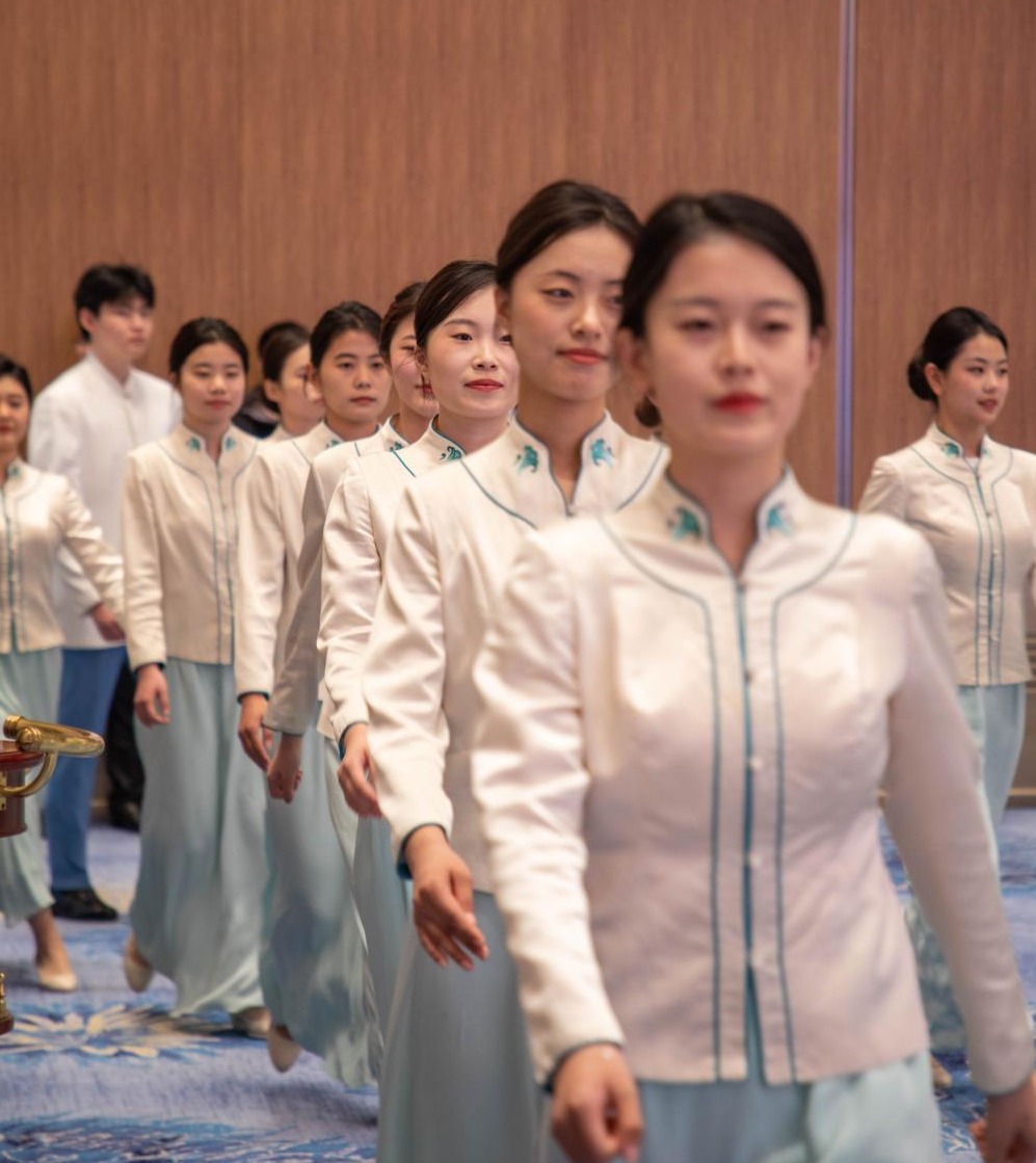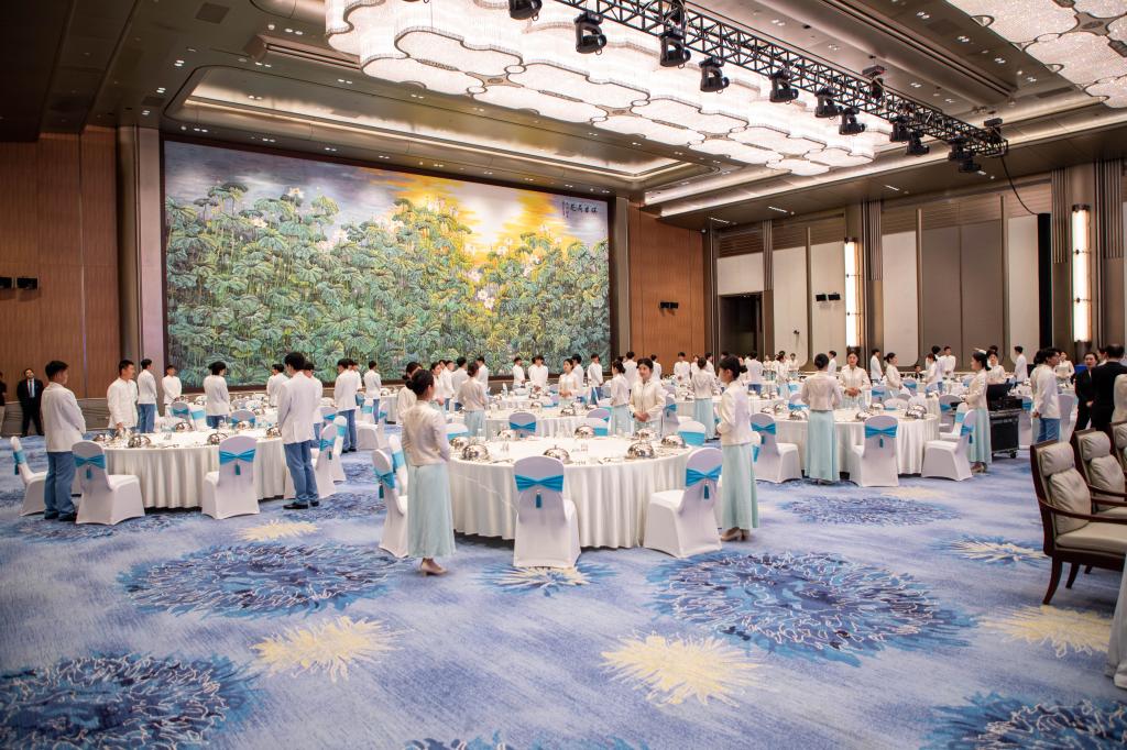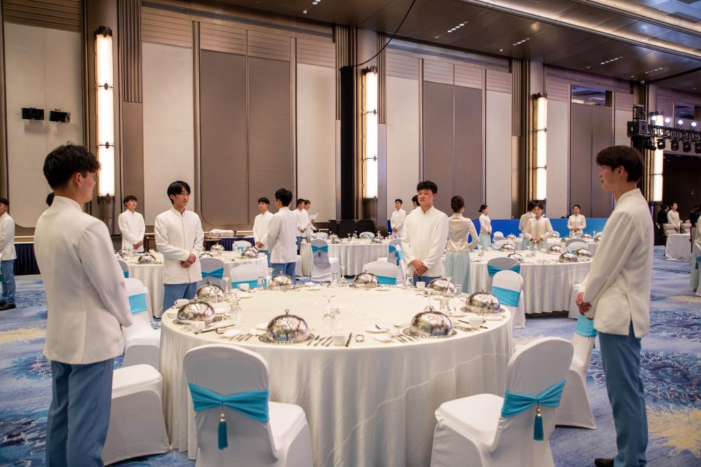 正式晚宴前,志愿者们开展了为期半个月的会前培训和实战演练,提前了解会场分布、不断练习宴会礼仪,为正式晚宴做了充分准备。晚宴当天,志愿者们以热情周到的服务、认真负责的态度和饱满的精神状态,高标准、高质量为中外嘉宾做好各项服务保障工作,他们用实际行动诠释了“奉献、友爱、互助、进步”的志愿服务精神,展现了新时代青年的责任与担当。