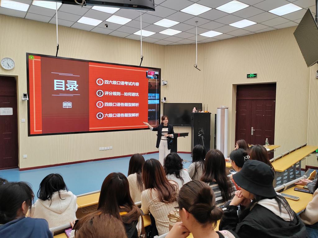 系列讲座围绕大学英语四六级口语、英语写作和专升本英语备考策略进行。李夏结合历年英语四六级口语真题,详细解析了各个题型的做题技巧,从语言组织、观点表达和有效沟通等方面,进行了深入浅出的讲解,使学生不仅对考试有了清晰的认识,也掌握了实用的备考方法。李姗姗针对考生在英语写作中“下笔难言”等痛点,从阅卷人的视角介绍了四六级作文的阅卷评分标准,强调灵活表达以及如何根据上下文推断题眼并避免套用网络模版的重要性,提醒考生平时扩大阅读面,内化成文字表达。张敏以专升本英语真题作为切入点,通过题型的分析和现场真题演练,讲解了备考策略,建议考生在日常学习中注重词汇的积累、翻译技巧的掌握和作文常见逻辑词的运用,帮助学生明确备考方向。各讲座期间安排了形式多样的互动环节,现场气氛热烈。