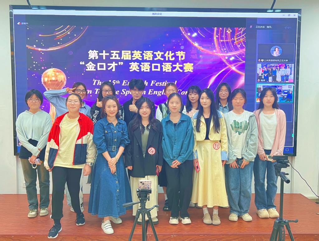 5月9日下午,第十五届英语文化节“金口才”英语口语大赛决赛在1-1阶梯教室举行。青岛、泰安两校区参赛选手在线同台竞技。