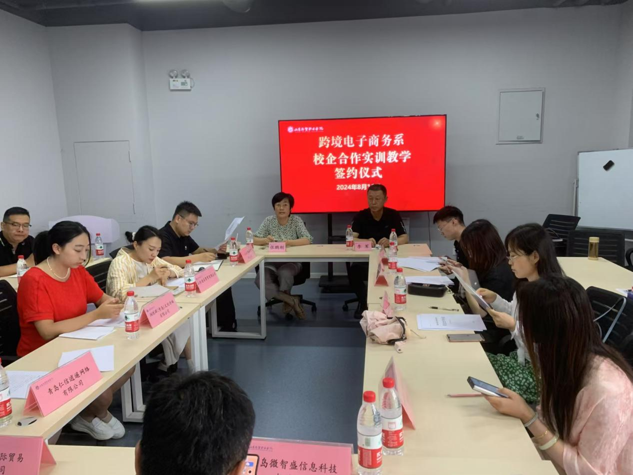 随后,各企业负责人分别就本次校企合作实训教学提出了建议与展望。跨境电子商务系主任张鹏刚代表跨境电子商务系与企业签署了合作协议。