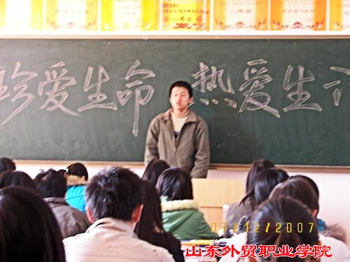 2007年12月7日中午,07级国贸7班全体同学在教室举行了“珍爱生命·热爱生活”的主题班会。系总支副书记韩淑君老师参加了班会并与同学们交流体会。