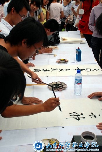 为庆祝中华人民共和国成立60周年,9月27日下午16时,院学生会在新图书馆广场举办了“雄起六十周年,浓情中国风”主题书画展。同学们用最具中国风的元素表达了自己对祖国的祝福。
