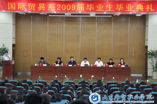 7月5日上午,国际贸易系在学术报告厅举行了09届毕业生毕业典礼。院长王荣昌、学生工作部(处)处长张风文、教务与科研处长陈祥国、综合基础部党总支书记刘维军和国际贸易系领导班子出席了毕业典礼;参加毕业典礼活动的还有国际贸易系北校区的全体毕业生、南校区的毕业生代表、毕业班的辅导员、班主任和老师代表。典礼由国际贸易系党总支书记韩淑君主持。