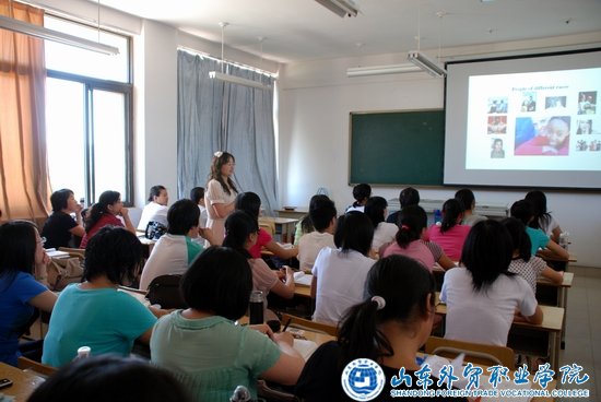 为深化大学英语教学改革,积极配合我院09级学分制的实施,顺应大学英语四、六级新题型改革趋势,进一步加强校际交流,向驻青高校的优秀同行学习,提高教师的授课水平和讲课艺术,公共外语部特邀请青岛理工大学江建利老师分别于6月22日(周一)和6月25日(周四)下午前来为我院公共外语部全体教师做了两场教学示范课,08国贸3班部分学生也参加了示范课以配合课堂演练。
