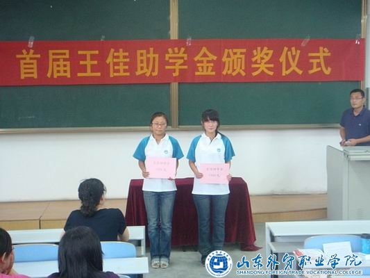 随后杨书记、姚主任向获得此次“王佳助学金”的同学颁发了助学金。受助学生——王佳老师生前任职辅导员的07级商务韩语班学生张瑜和陈秀月先后发言,表达了对王佳老师的怀念和对张涛老师的感激之情,她们表示今后一定会好好学习、不辜负他们的期望,奋发图强、积极进取,努力成为对社会有贡献的人。