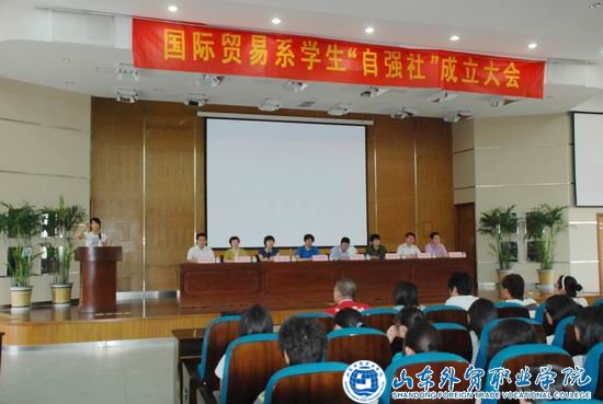 6月1日下午,国际贸易系在学术报告厅举行了“自强社”成立大会,学生工作处副处长、院学生资助管理中心主任张刚、院团委副书记李欣、国际贸易系领导班子成员参加了会议。辅导员、“自强社”第一批社员参加了此次大会,团总支书记崔洪宇主持了会议。