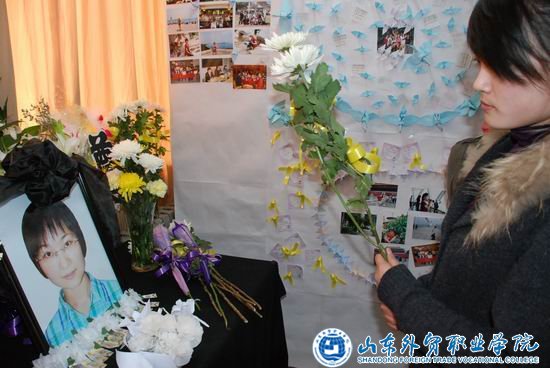 “走好,王佳老师。”几天来,同学们纷纷自发地来到辅导员办公室,用一页页洁白的纸张折出千余只纸鹤,放置于怀念室内,并在四周挂满了王佳老师和同学们在一起的照片,以此深切缅怀王佳老师。与此同时,在外实习未能返青的同学也纷纷通过贴吧、网络博客、手机短信留言等形式,寄托无限哀思。同学们表示,绝不辜负老师对他们的殷切希望,以实际行动来表达对王佳老师的怀念。