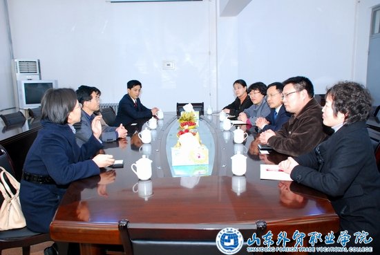 李良斋书记对山大客人的来访表示欢迎,并介绍了我院办学的历史和发展情况。陈宏伟书记回顾了山东大学与我院在1988、1989年合作开办国际贸易班的历史,介绍了山大经济学院国际贸易系本科教育、研究生教育的现状,希望与我院继续探讨国际贸易专业方面的合作。刘静华主任对我院国际贸易实务专业的培养目标、定位、专业特色、精品课程等情况进行了详细的介绍。双方就相关课程设置、实训室建设等问题展开交流,并探讨了在教师互派、学位教育方面的合作。