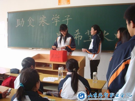 为了加强对学生的爱心教育,树立校园团结友爱、互帮互助的良好风尚,2月25日下午,商务外语系团总支分别在07、08级各班教室举行了“一元钱温暖贫困生”的捐款活动。