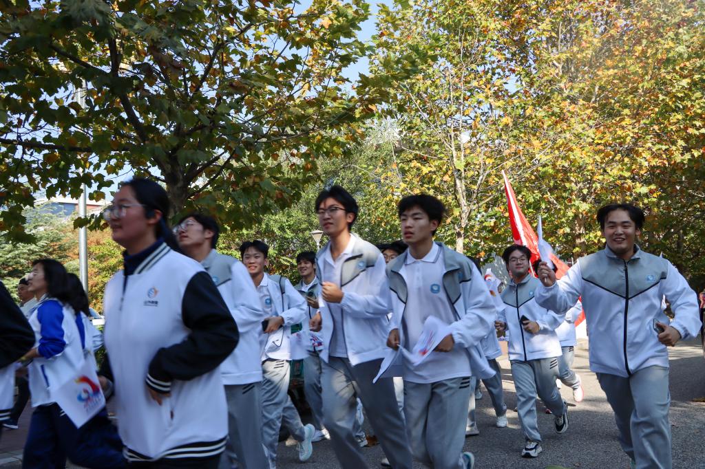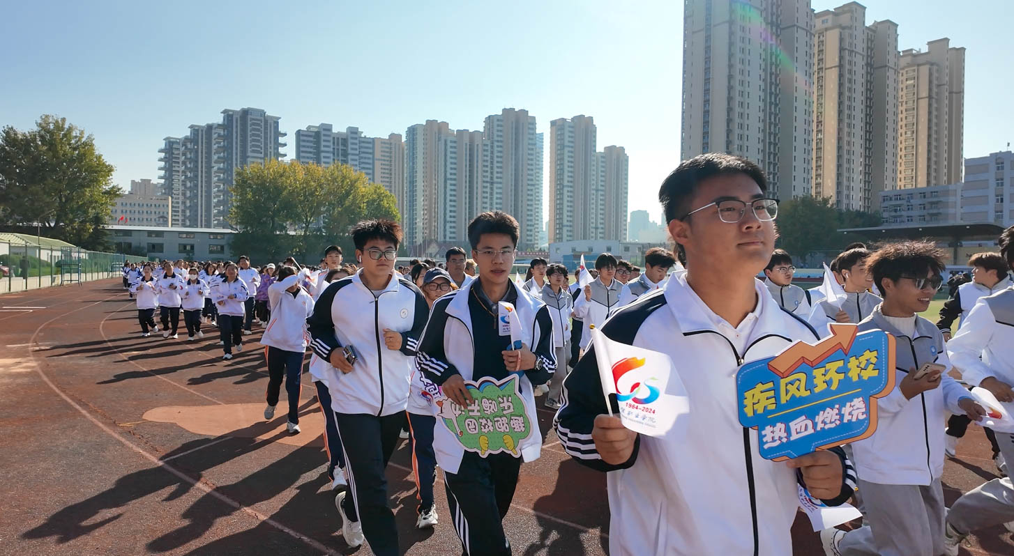 随着发令员的一声令下,环校跑正式开始。本次环校跑以整个校园为场地,从操场出发,途经教学楼、图书馆等地,全长共3.8公里,吸引了百余名在校学生的参与。在阳光明媚的道路上,同学们身着运动服装,手中挥动着旗帜,如一道道流动的彩虹,绽放出青春活力。他们互相鼓励、打气,在奔跑的过程中挥洒汗水、释放激情,用实际行动诠释着运动的真谛,感受体育运动与校园文化的独特魅力。随着一个个身影跑过校园的各个角落,大家又一次在奔跑的过程中,重新领略了校园的美丽风景和深厚底蕴。