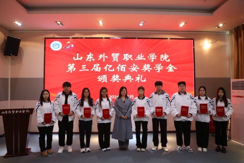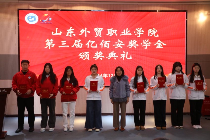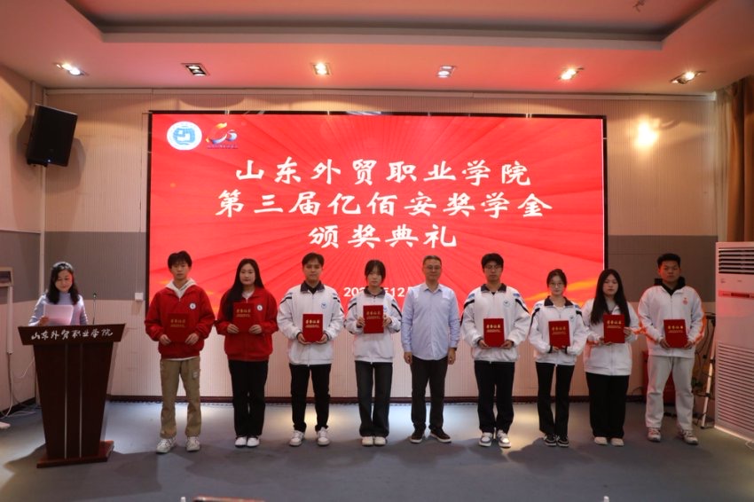 12月26日,山东外贸职业学院第三届亿佰安奖学金颁奖典礼在图书馆四楼会议室举行。