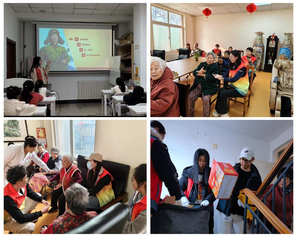 学院星火志愿者协会和国际贸易系组织志愿者分别走进李沧区金秋社区和九水街道社区,针对社区主干道、绿化带、公共设施等区域开展社区清洁活动。国际运输与物流系、跨境电子商务系组织师生走进李沧区乡情养护院和汇康源老年护理院,为老人们准备了丰富多彩的文艺表演,表演之余志愿者拿起清洁工具,为老人们打扫房间、整理物品,与老人们亲切交谈,倾听他们的故事,了解他们的生活需求,并利用自己的专业知识向老人们介绍手机购物平台的使用以及科普防诈知识。商务外语系智“绘”红领巾志愿服务队走进毕家上流社区向社区儿童讲述雷锋故事,传播雷锋精神。