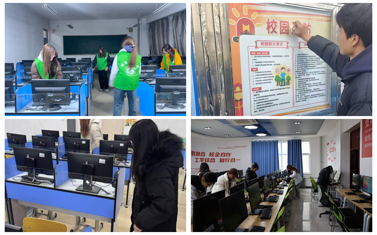 在校园内,各系学生会以助力美丽校园建设为主题,开展校园清洁活动,财会金融系、跨境电子商务系等组织学生志愿者在校园内、实训室、智慧教室等公共区域,开展卫生清理、物品整理及橱窗擦拭等活动;开展信息工程系积极落实“我为同学办实事”,针对同学们日常使用电脑中遇到的问题开展义诊活动。