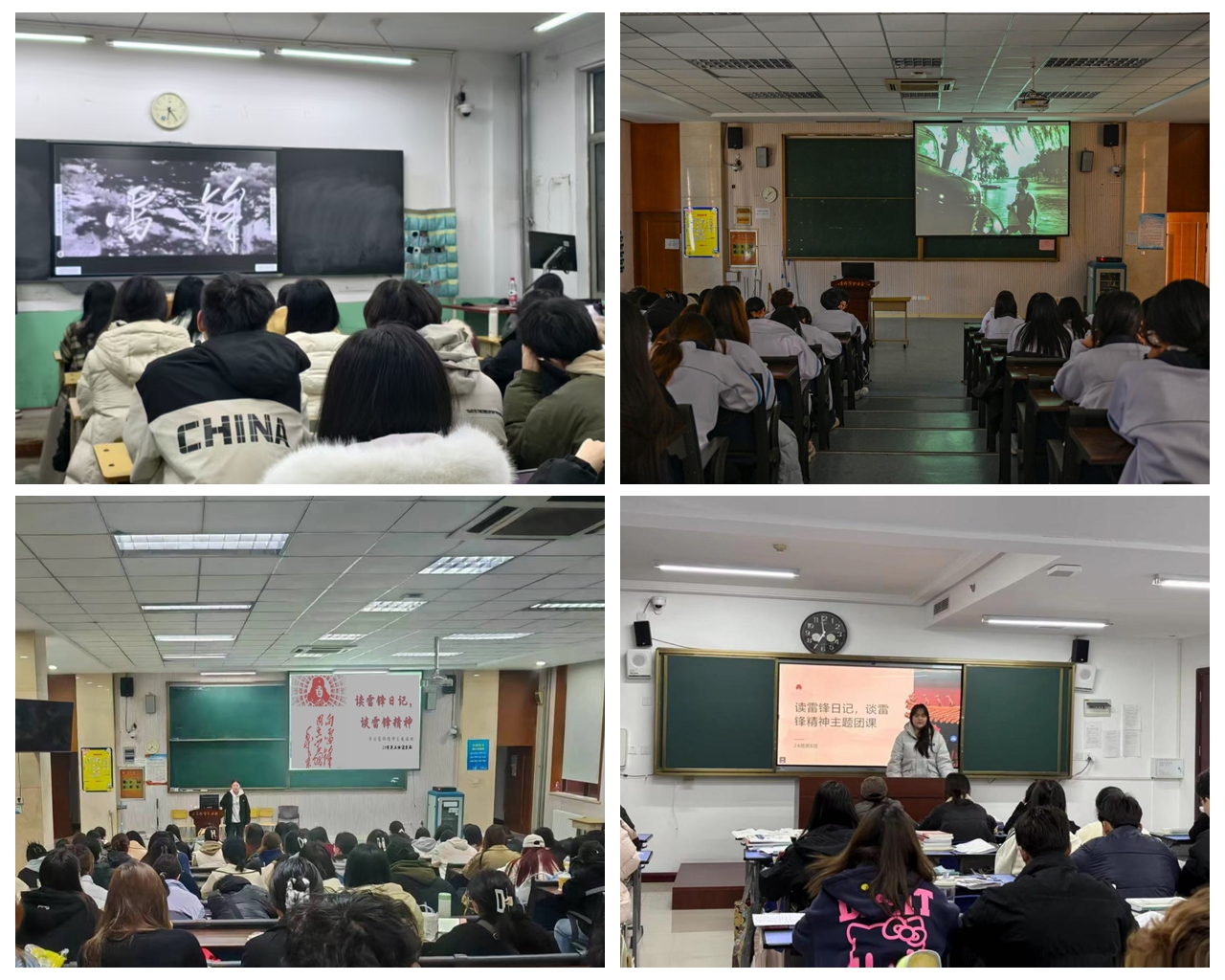 各级团组织充分利用各类平台将雷锋精神有效融入红色教育。通过开展主题团课、主题团日、班会等多种形式广泛开展雷锋精神学习宣传,以此增强对雷锋精神的认知与理解。国际贸易系、经济管理系、信息工程系等组织开展“学雷锋”集中观影活动,增强雷锋精神在青年队伍中的传播力和影响力。