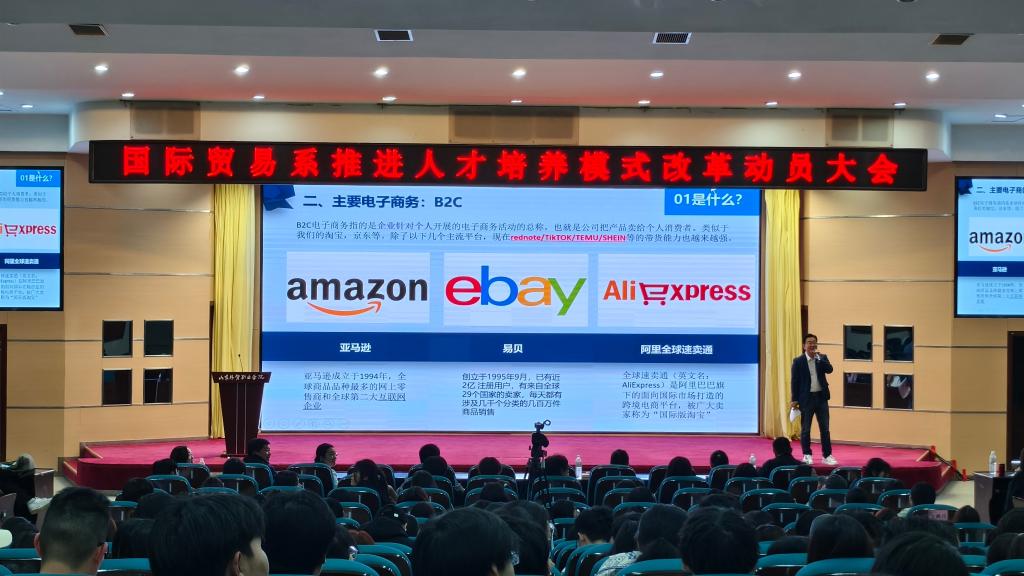 孙浩以“20年外贸老鸟说外贸”为主题开展了一场精彩的分享会。会上孙浩主管从“什么是外贸”“为什么要做外贸”“如何做外贸”三个方面展开了深刻的探讨。随后刘希全针对第五学期实践教学改革和课程初步安排做了介绍。会议还邀请了已毕业的优秀毕业生们以视频方式为2026届毕业生们解疑答惑,讲述了校企合作实践教学项目的特点和优势,分享了自己的学习经验。