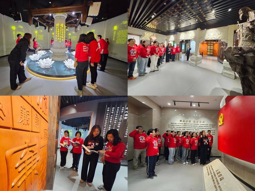 活动当天,观看完影片《明德昭廉》后,全体党员结合近年来反腐败斗争中的真实案例,特别是当地违纪违法典型案例,依次参观了“德廉之道”“贪腐之祸”“修身之路”主题展厅,通过沉浸式影像、典型案例展示、互动体验等形式,既深刻感悟了道家文化中的廉政智慧,也上了一堂生动的廉政警示教育课,以反面震慑案例增强警示教育的针对性和实效性,引导党员教师们加强“慎初”“慎独”“慎友”“慎微”“慎欲”“慎终”的清风廉行。最后,全体党员在党旗下重温入党誓词,庄严承诺永葆共产党人清正廉洁的政治本色。活动结束后,党员们纷纷表示此次参观将传统文化与廉政教育相结合,形式新颖、发人深省,今后将以更高标准要求自己,立足岗位践行为党育人、为国育才的初心使命。