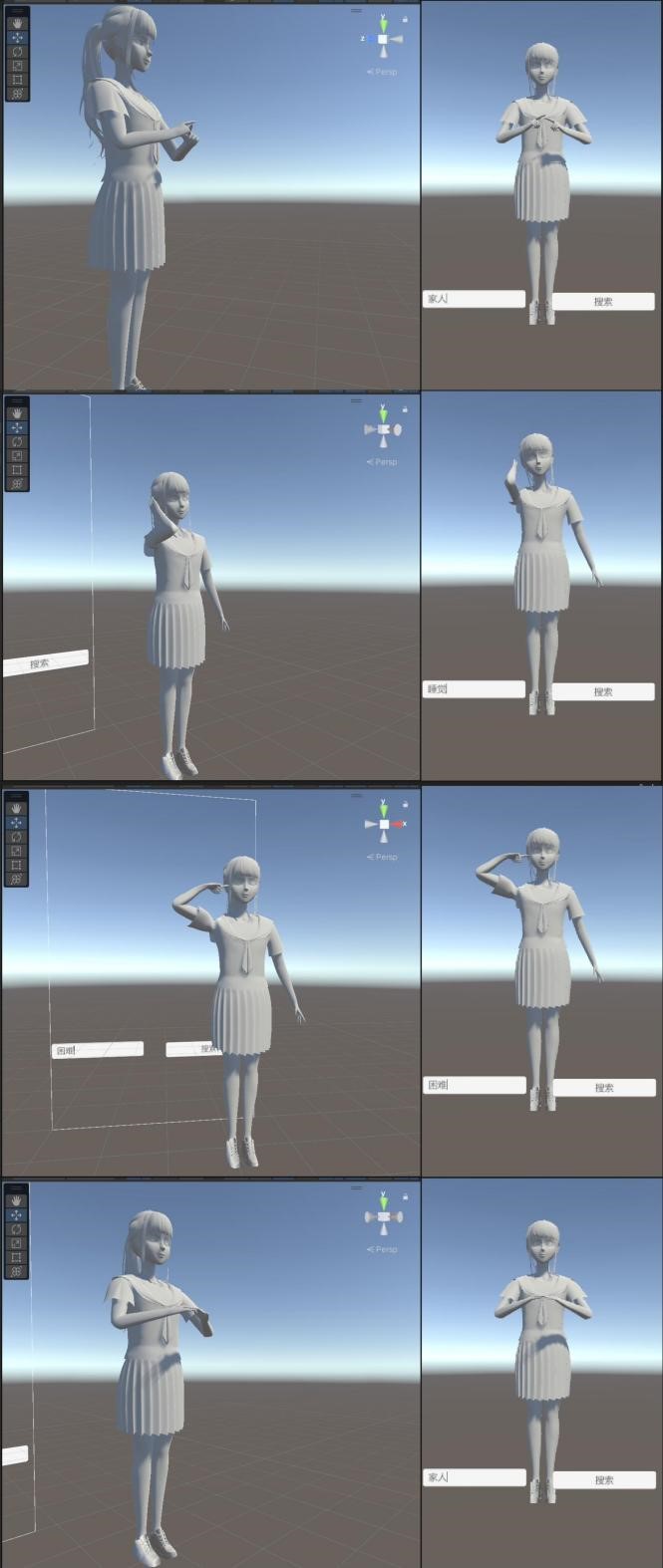 搜索功能,用户可快速调取词汇,由3D虚拟人物实时演示标准手语动作,实现直观、高效的学习体验。目前,手语库已收录500多个高频词汇,且词汇量仍在不断扩充。