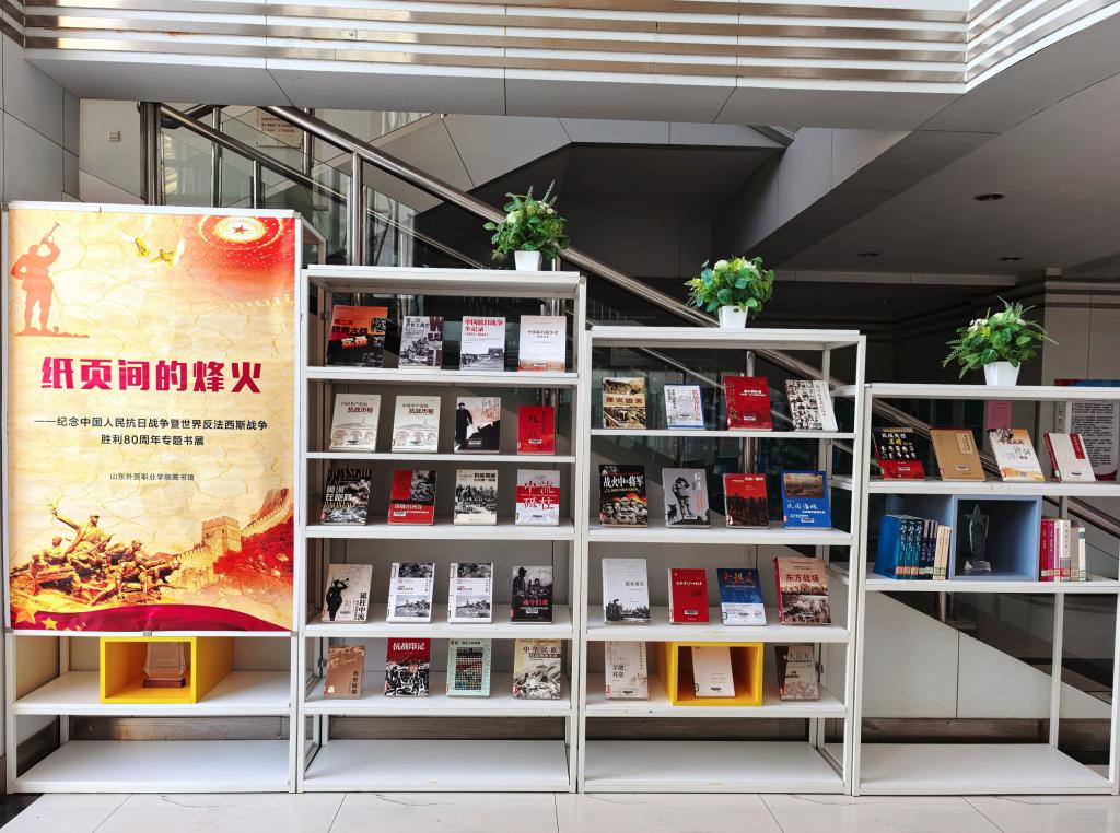为铭记历史,缅怀革命先烈,弘扬伟大的抗战精神,9月3日起,图书馆在一楼大厅举办“纸页间的烽火”——纪念中国人民抗日战争暨世界反法西斯战争胜利80周年专题书展。