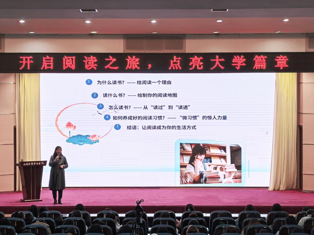 该活动是学院积极响应《山东省教育厅关于开展 2025 年校园阅读系列活动的通知》要求,开展阅读指导和主题阅读实践活动的重要举措之一,也是图书馆阅读推广系列活动的重要内容。本次讲座不仅为同学们提供了实用的阅读指导,更激发了大家的阅读热情。