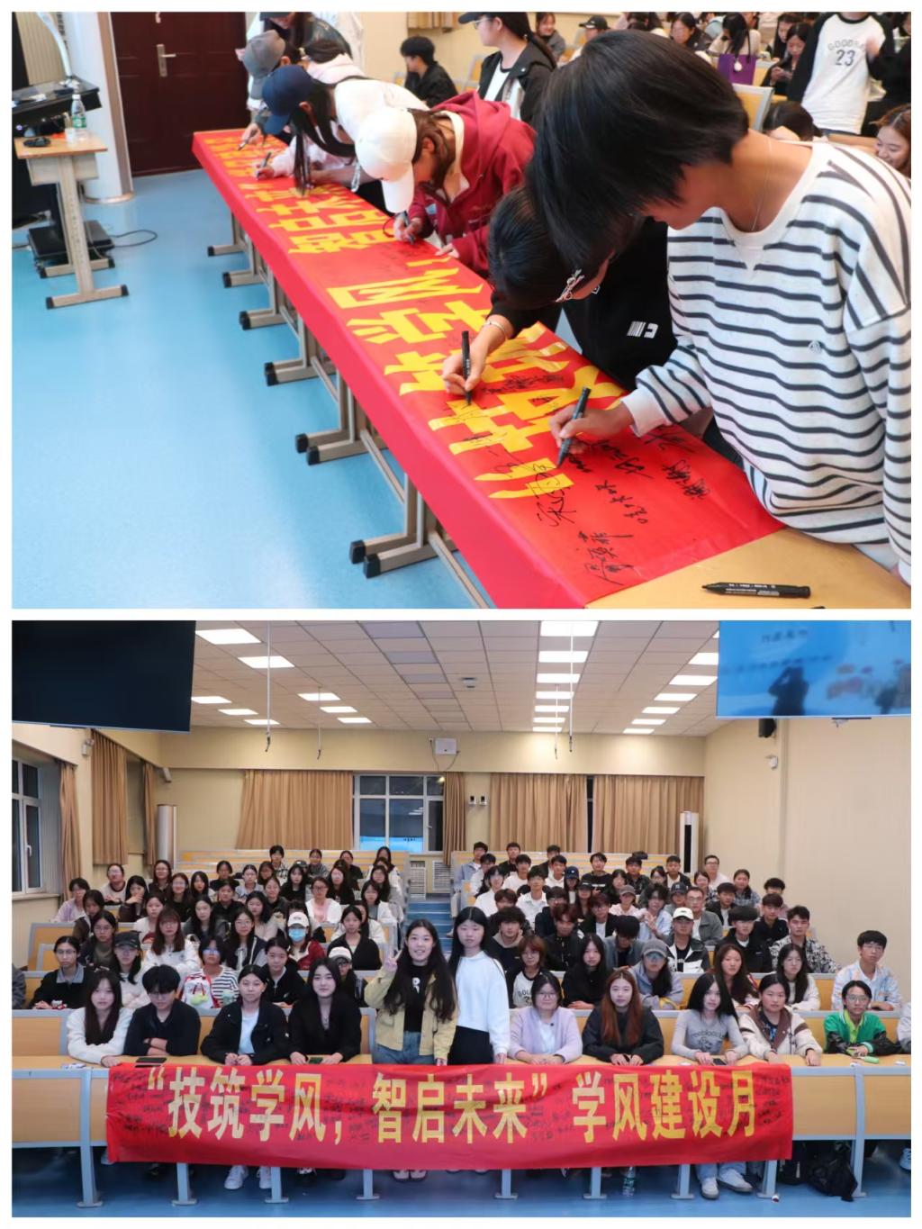 为营造积极向上的系部学习氛围,我系同学代表于1-3阶开展学风建设主题月开幕仪式活动,同学们在印有“技筑学风,智启未来”主题的横幅上签下自己的名字,许下成为这场学风建设运动的参与者与共创者的约定。