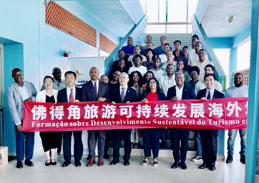 驻佛得角特命全权大使张洋、佛旅游研究院院长费尔南德斯、佛酒店与旅游学校校长德尔加多和我院经济管理系主任谭书旺出席“佛得角旅游可持续发展海外培训班”开班仪式并致辞,佛外交部经济合作与发展司长何赛、驻佛得角使馆参赞周立春、我院旅游管理专业带头人宋飞参加开班仪式。培训期间,来自佛得角相关部委和各地旅游协会的35名学员,围绕文旅融合和海洋旅游、互联网+旅游等主题,系统学习了中国在旅游可持续发展方面的实践经验。