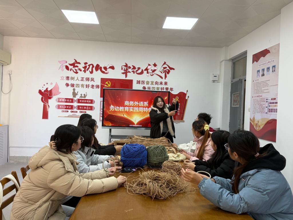 为深入践行劳动教育理念,传承中华优秀传统文化,感悟匠心技艺中蕴含的劳动精神,12月4日下午,商务外语系在劳动教育周期间组织开展了“指间草编·非遗传承”特色实践活动。系部劳动周轮值班级学生代表积极参与,亲身体验草编技艺的魅力与匠心。