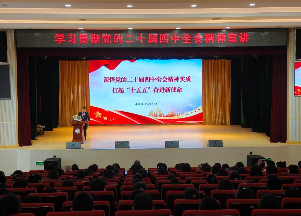 宣讲会上,季洪辉以《深悟党的二十届四中全会精神实质 扛起“十五五”奋进新使命》为题,结合基础教育实际和师生成长需求,从“十四五”规划实施成就、当前国内外形势与中国式现代化的使命任务、“十五五”时期发展目标与战略重点三个方面,进行了深入浅出的解读。宣讲通过详实的数据和生动的案例,帮助师生进一步把握国家发展大局与教育使命,激发奋斗“十五五”、建功新时代的热情。现场师生认真聆听,反响热烈。大家纷纷表示,要将全会精神转化为学习和工作的动力,以实际行动为推动青岛教育事业高质量发展贡献智慧与力量。