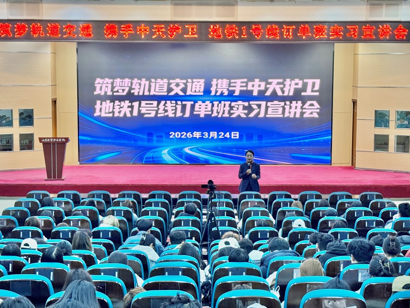 3月24日,经济管理系在学术报告厅举办“筑梦轨道交通,携手中天护卫”地铁1号线安检服务订单班宣讲动员会,经济管理系2024级部分学生参加动员会。
