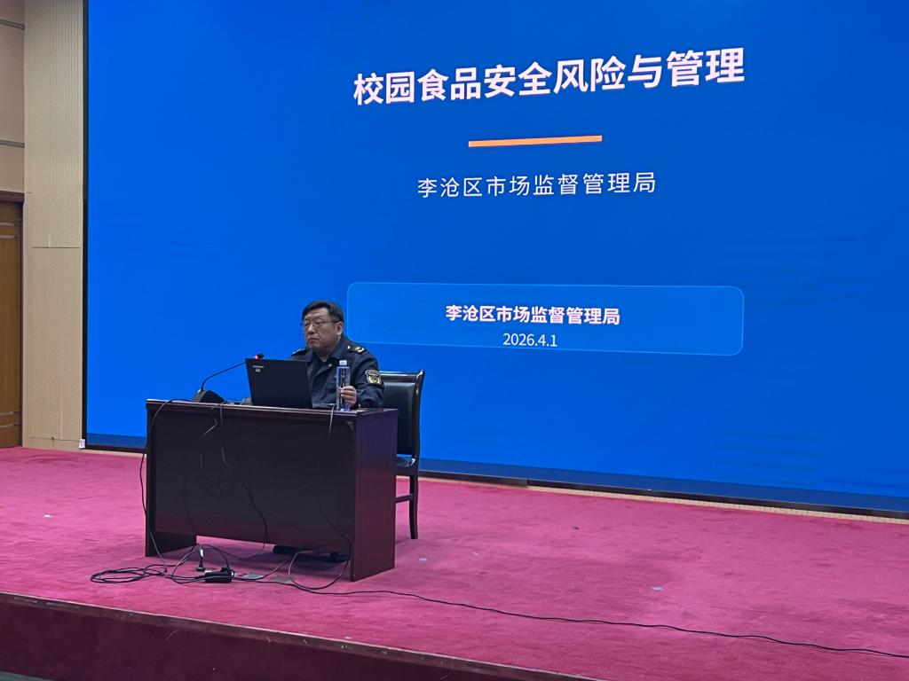 为进一步筑牢校园食品安全防线,规范餐饮服务操作流程,4月1日下午,学院后勤服务处在学术报告厅举办食品安全风险与管理专题培训。本次培训邀请李沧区市场监督管理局副局长高大勇主讲,学院食品安全管理人员及全体餐饮从业人员参加了培训。