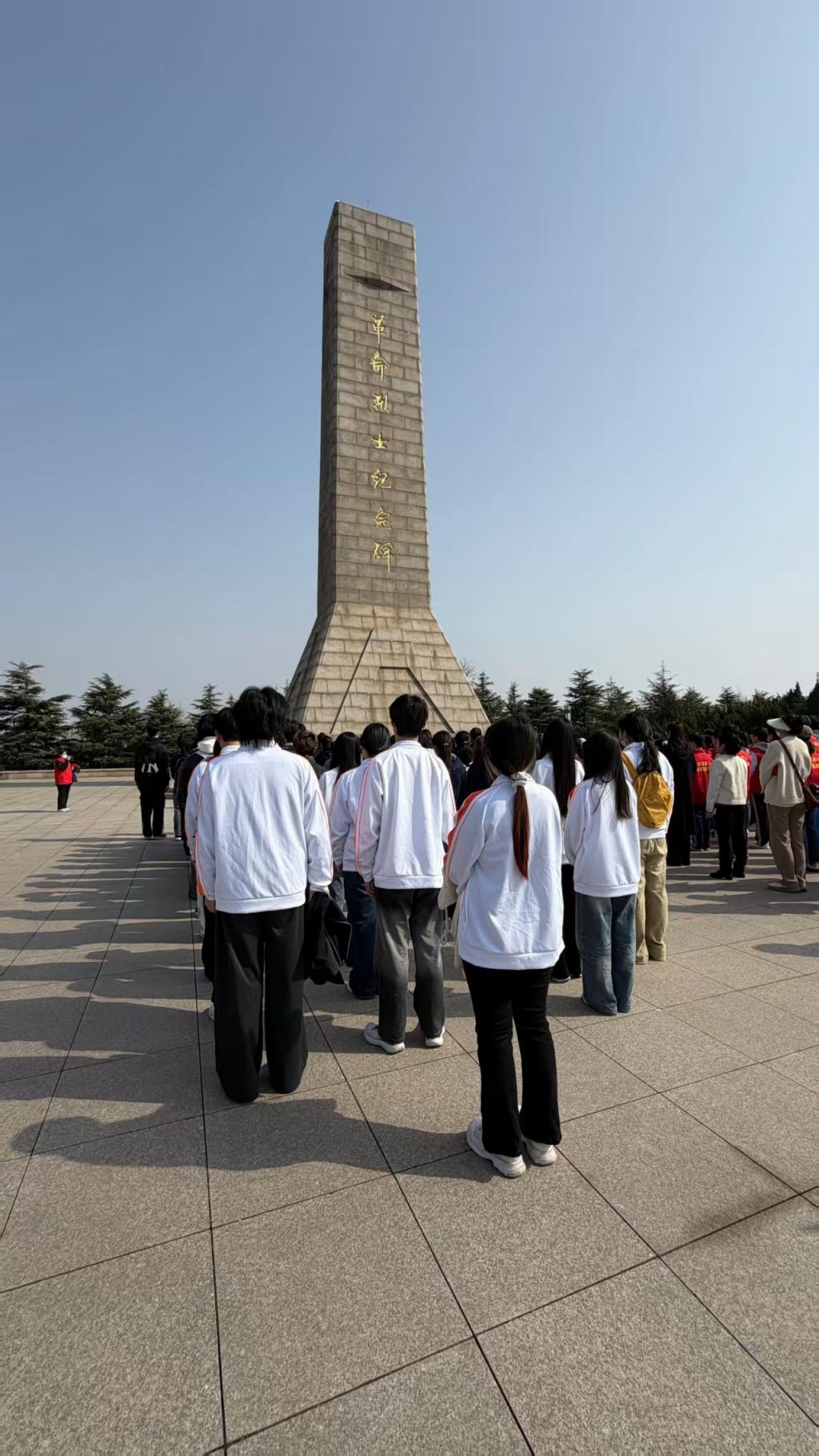 清晨的崂山革命烈士陵园内松柏苍翠、庄严肃穆,革命烈士纪念碑静静矗立。学生代表身着统一系服,神情庄重,怀着无比崇敬的心情步入陵园,在纪念碑前整齐列队,肃穆开启祭扫仪式。