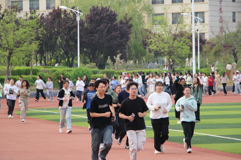 活动开始前,全体师生伴着轻快的音乐进行了活力四射的热身操,迅速点燃现场气氛。随着发令枪响,大家迎着春日暖阳奋力奔跑,在绿意盎然的校园中勾勒出一道充满活力的风景线。跑道上,师生们互相鼓励、并肩前行,既有你追我赶的拼搏,也有携手共进的温情,充分展现了泰安教学部师生积极向上的精神风貌。